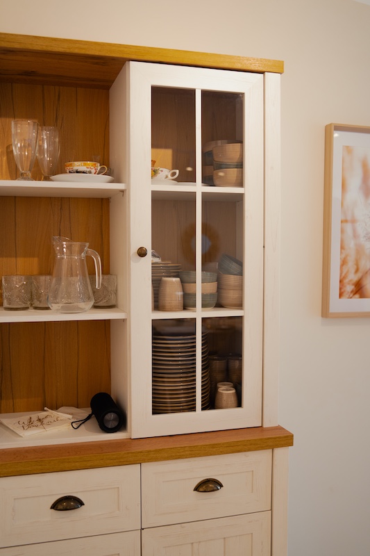 Nefrytowy Zakątek to m.in. przestronny salon oraz w pełni wyposażona kuchnia, która ułatwia przygotowanie i podanie posiłków podczas spotkania. Zastawa stołowa, szkło oraz sprzęt kuchenny pozwalają komfortowo zorganizować przyjęcie w gronie rodziny, nawet jeśli część poczęstunku przygotowywana jest przez Was na miejscu.